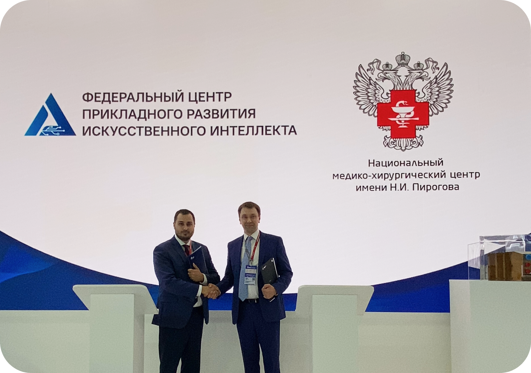Соглашение подписано с Национальным медико-хирургическим центром имени Н.И. Пирогова и направлено на совместную разработку и внедрение инновационных решений с применением технологий искусственного интеллекта в медицинскую практику. Подписи под документом поставили заместитель генерального директора по научной и образовательной деятельности ФГБУ «НМХЦ им. Н. И. Пирогова» Минздрава России Андрей Пулин и генеральный директор ФГАУ «ФЦПР ИИ» Эдуард Шантаев.